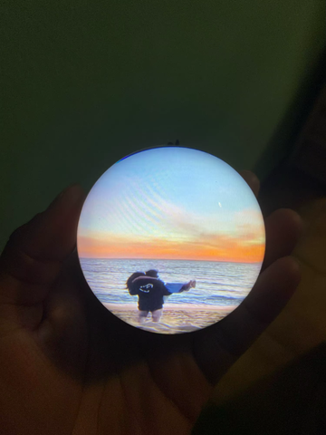 Se la regalé a mi pareja con un vídeo nuestro de viaje y aún lo tiene en su mesita. Dice que la ve todas las noches ❤️.